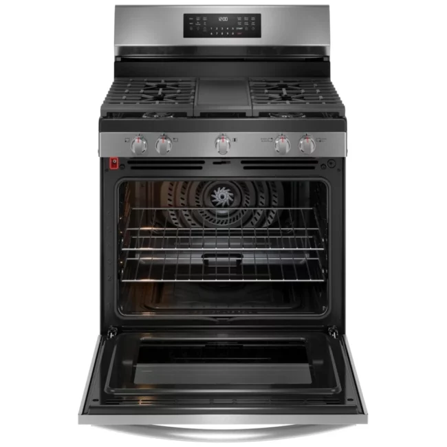 Cuisinière à gaz Frigidaire – 30 pouces, 5.1 pi³, convection, 5 brûleurs, Acier inoxydable – FCFG3083AS
