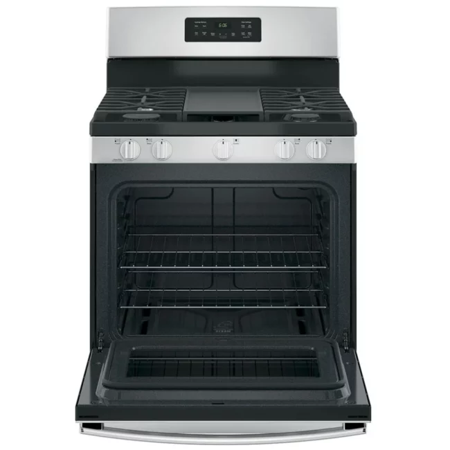 Cuisinière à gaz GE – 30 pouces, 5.0 pi³, Acier inoxydable – JCGBS66SEKSS