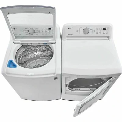 Ensemble laveuse sécheuse LG à chargement par le haut – 27 pouces, 5.6 pi³ + 7.3 pi³, blanc – WT7155CW & DLE6100W