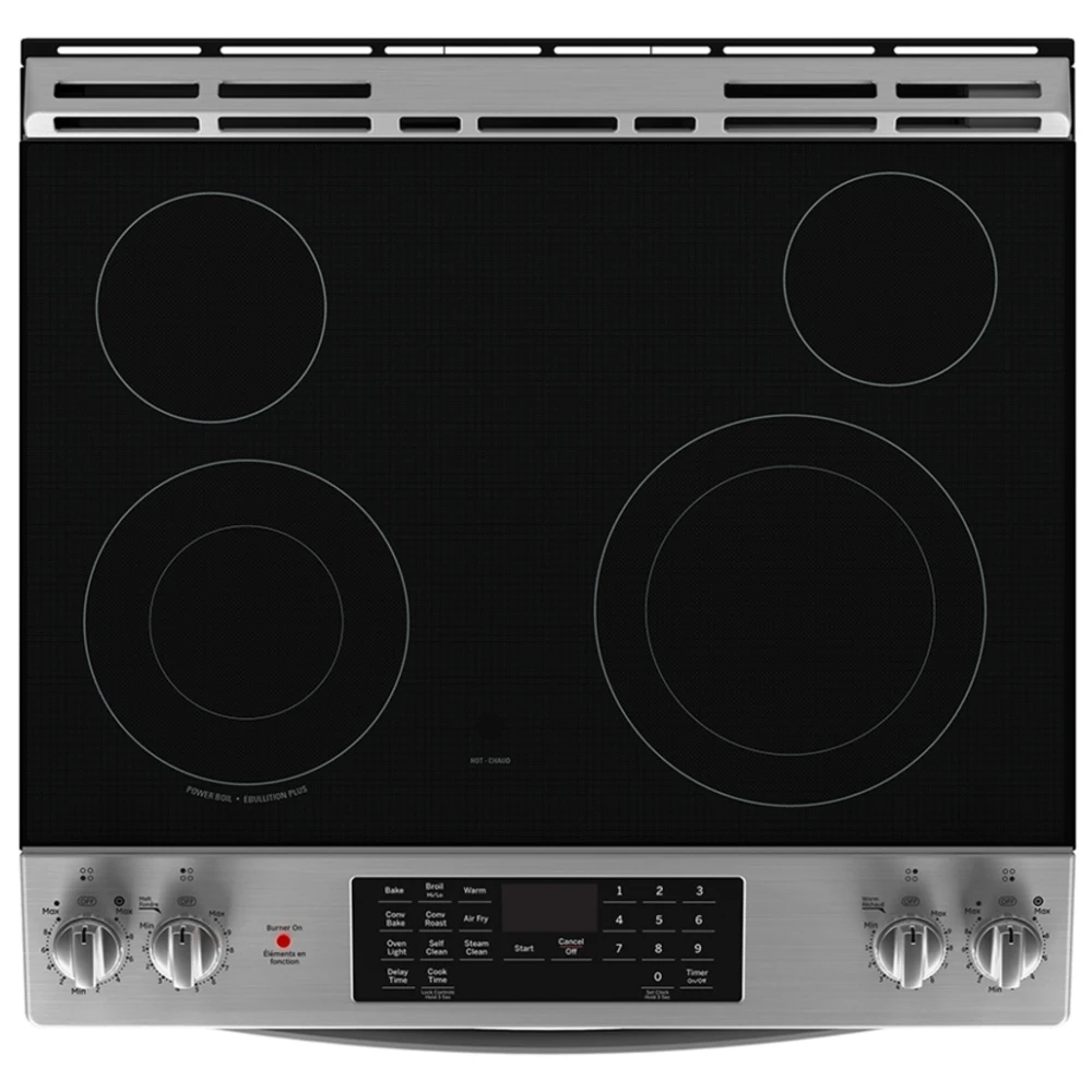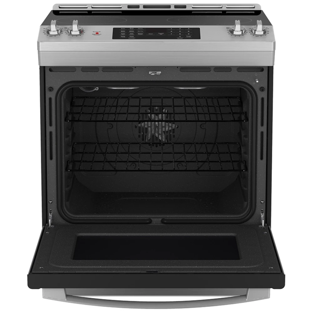 La cuisinière électrique GE JCS830SVSS est conçue pour offrir une cuisson polyvalente et moderne grâce à la convection et à la fonction Air Fry intégrée. Avec sa capacité généreuse et sa finition inox, elle s’intègre parfaitement aux cuisines contemporaines.