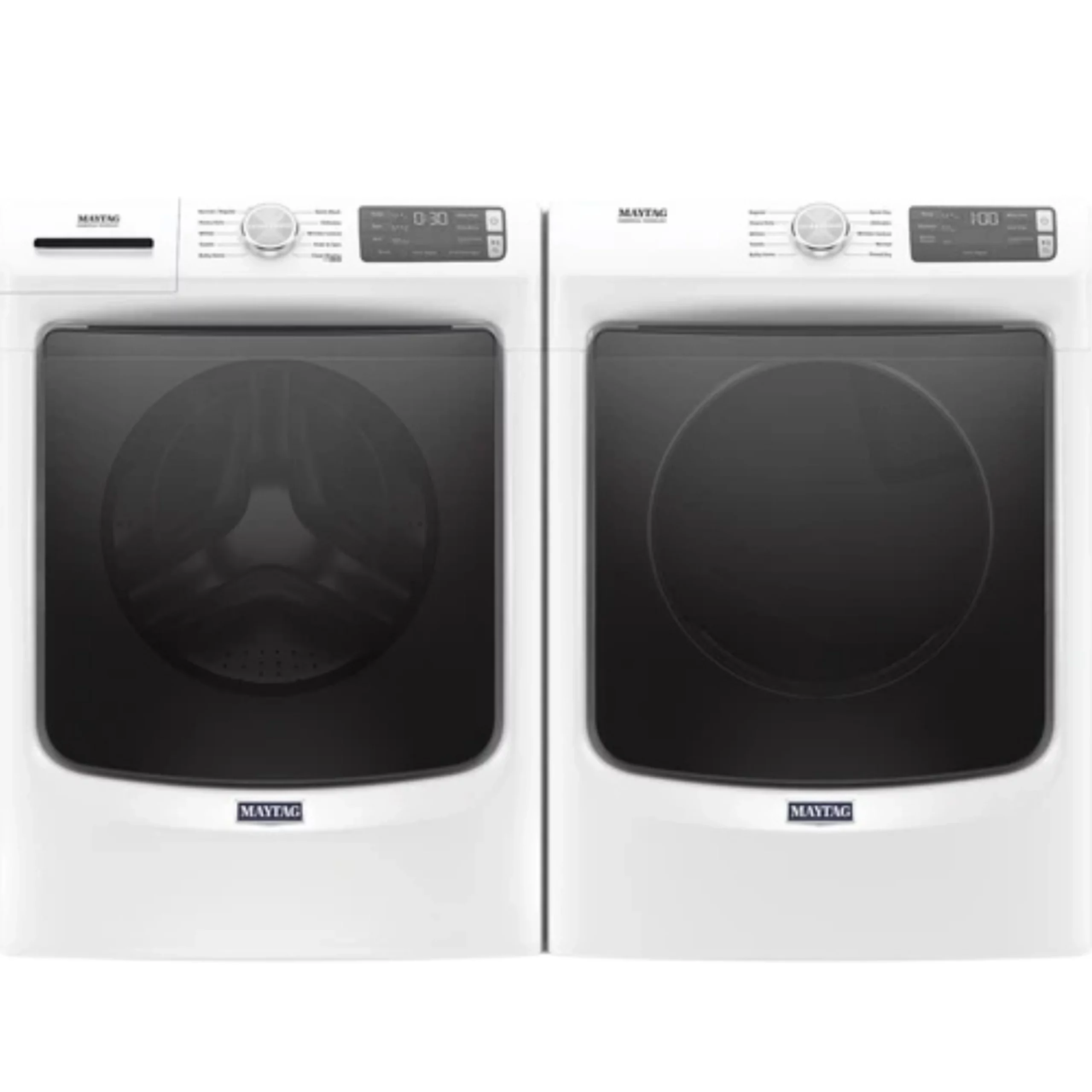 Cet ensemble laveuse et sécheuse Maytag offre une solution complète pour la buanderie. La laveuse à chargement frontal propose une capacité de 4,5 pi³, ce qui permet de laver efficacement les vêtements du quotidien ainsi que les charges volumineuses.