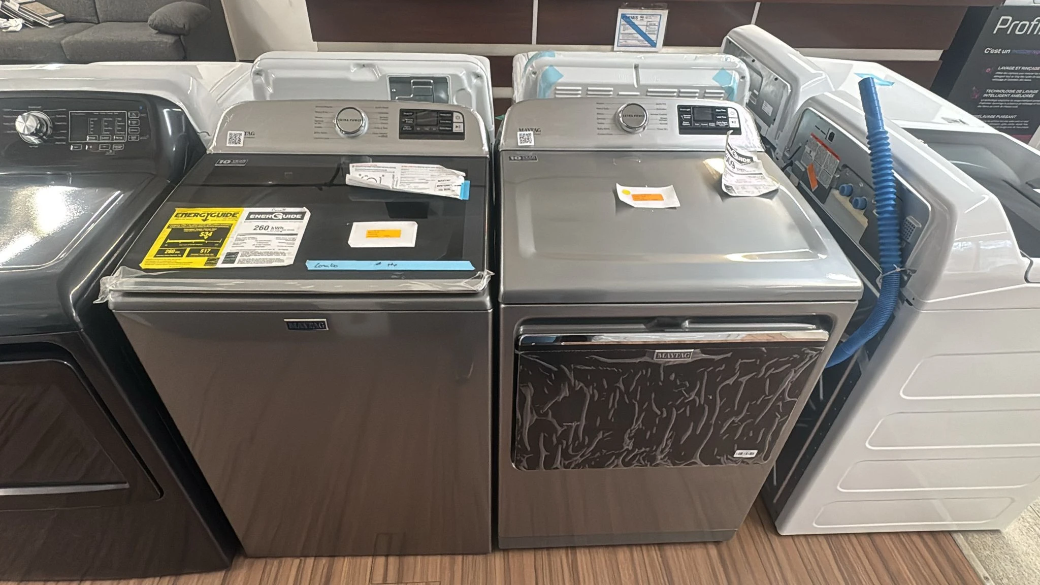 La sécheuse électrique Maytag 7.4 pi³ complète parfaitement l’ensemble. Elle offre 13 cycles de séchage, une fonction Steam Clean pour réduire les plis et une connectivité Wi-Fi. Ainsi, cet ensemble constitue une solution performante pour la buanderie familiale.
