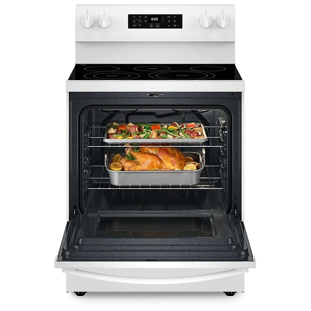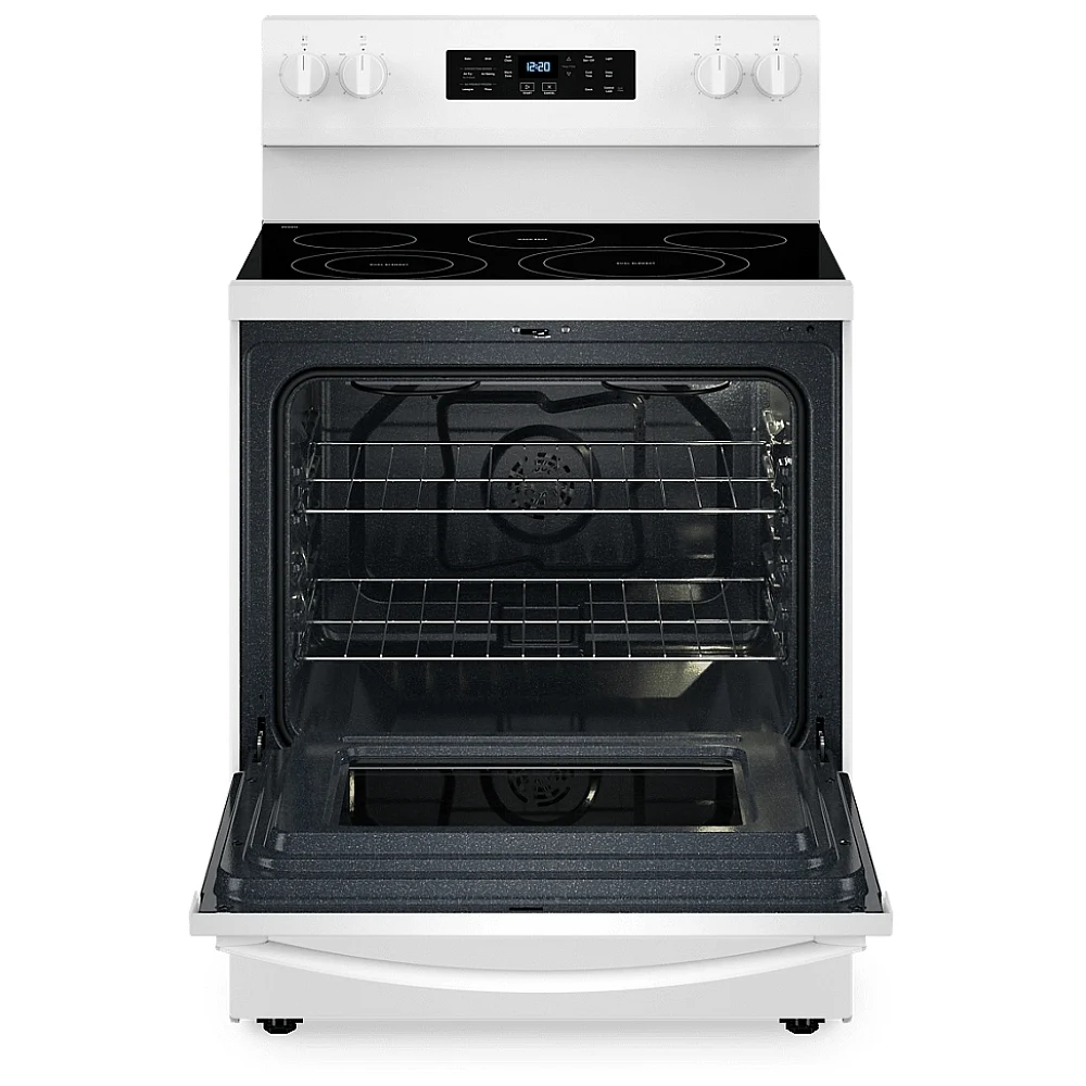 La cuisinière électrique Whirlpool YWFES5030RW est conçue pour offrir une cuisson efficace et uniforme grâce à la convection et à une surface de cuisson polyvalente à cinq éléments. Elle convient aux cuisines recherchant une capacité généreuse, des fonctions pratiques et une finition blanche facile à intégrer.