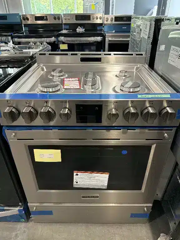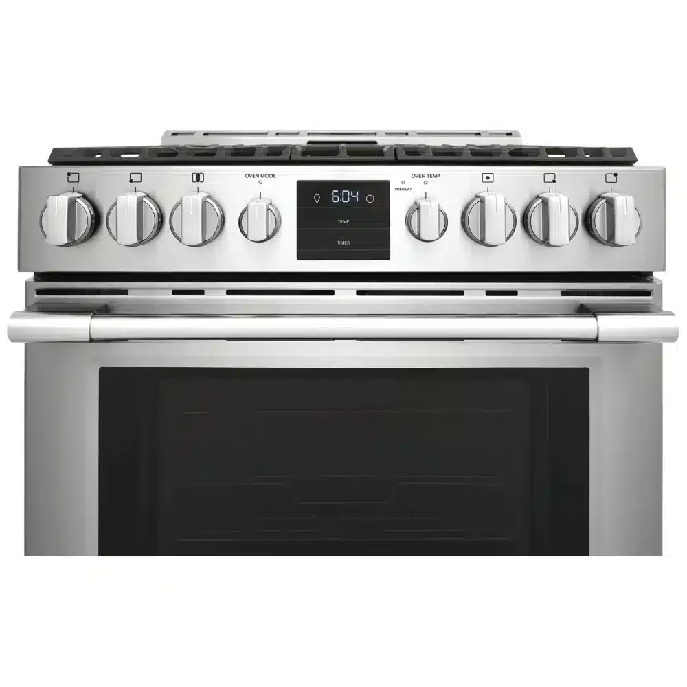 La cuisinière au gaz Frigidaire Professional PCFG3078AF vous offre puissance et précision pour une cuisson de niveau professionnel à domicile. Dotée de 5 brûleurs puissants, d’un four à convection véritable, et d’un design en acier inoxydable, elle combine performance et élégance. Sa technologie Even Baking™ garantit des résultats homogènes, tandis que ses grilles continues en fonte offrent stabilité et confort.