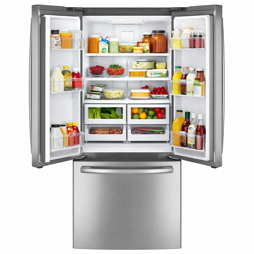 Conçu pour s’intégrer facilement dans des espaces plus restreints, ce modèle à portes françaises offre un accès large au compartiment réfrigérateur tout en conservant un congélateur inférieur spacieux.