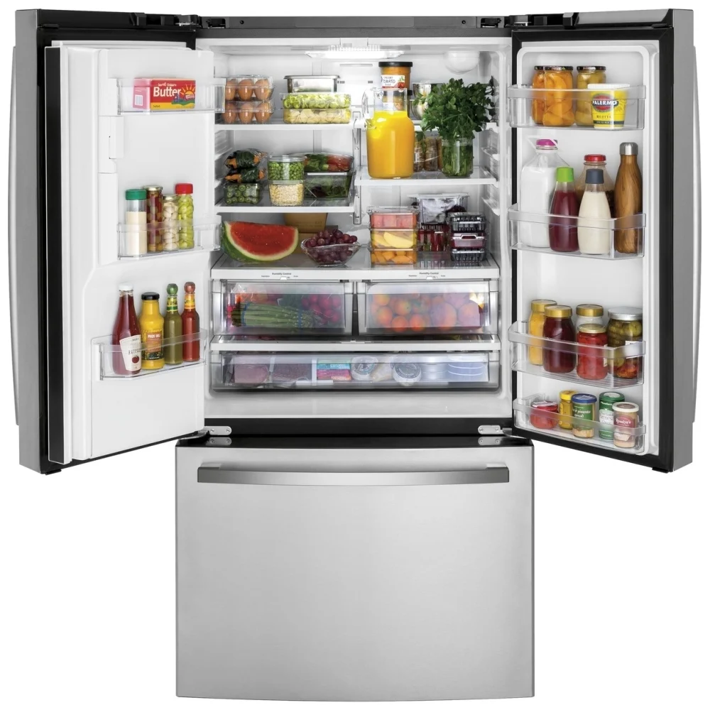 Avec ses 25.6 pi³, ce réfrigérateur permet de conserver une grande quantité d’aliments frais et surgelés. De plus, les portes françaises facilitent l’accès aux tablettes et aux compartiments.