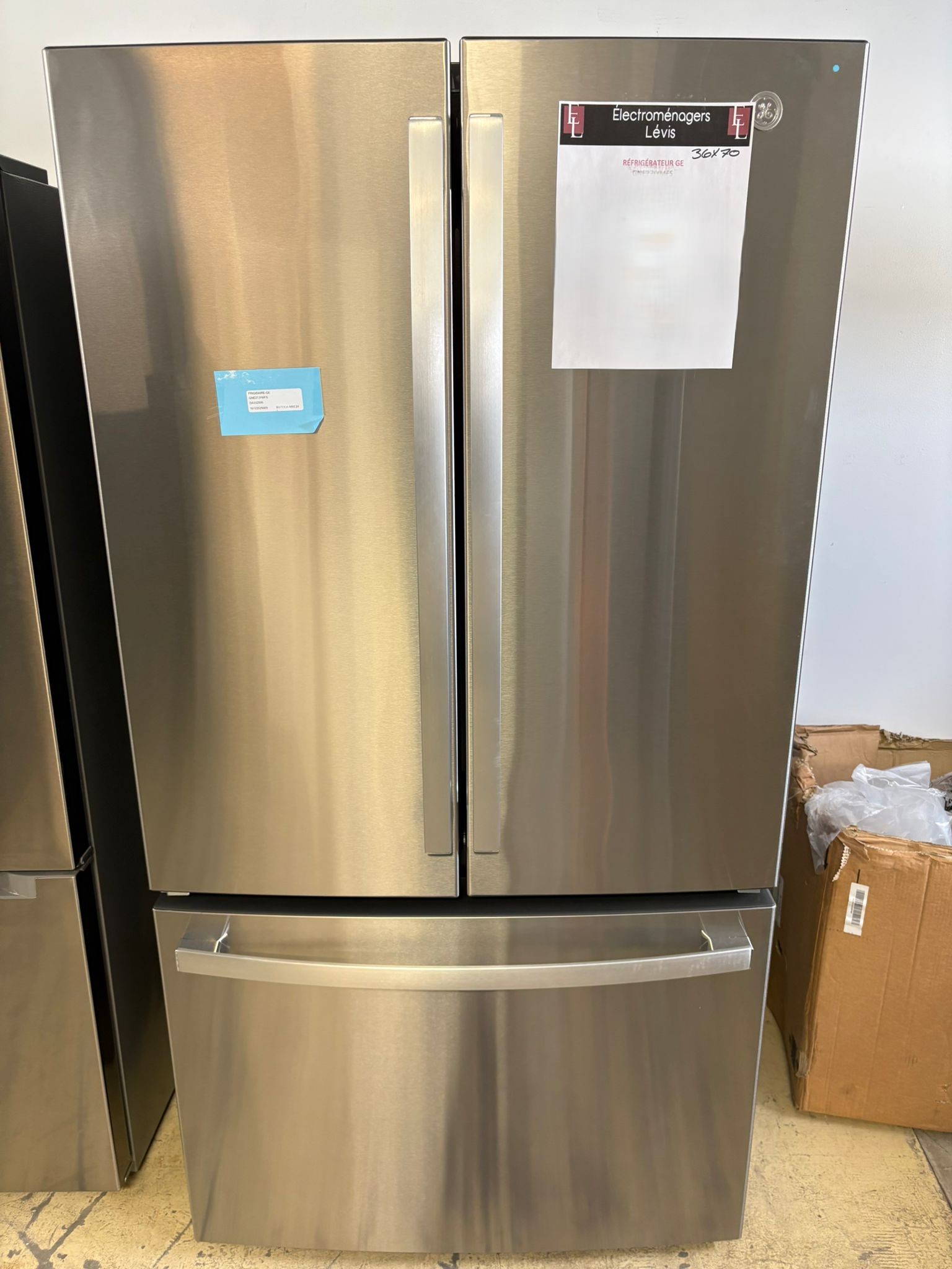 Avec ses 27 pi³, ce réfrigérateur permet de stocker une grande quantité d’aliments frais et surgelés. De plus, la configuration à portes françaises offre une excellente visibilité et un accès facile aux tablettes.