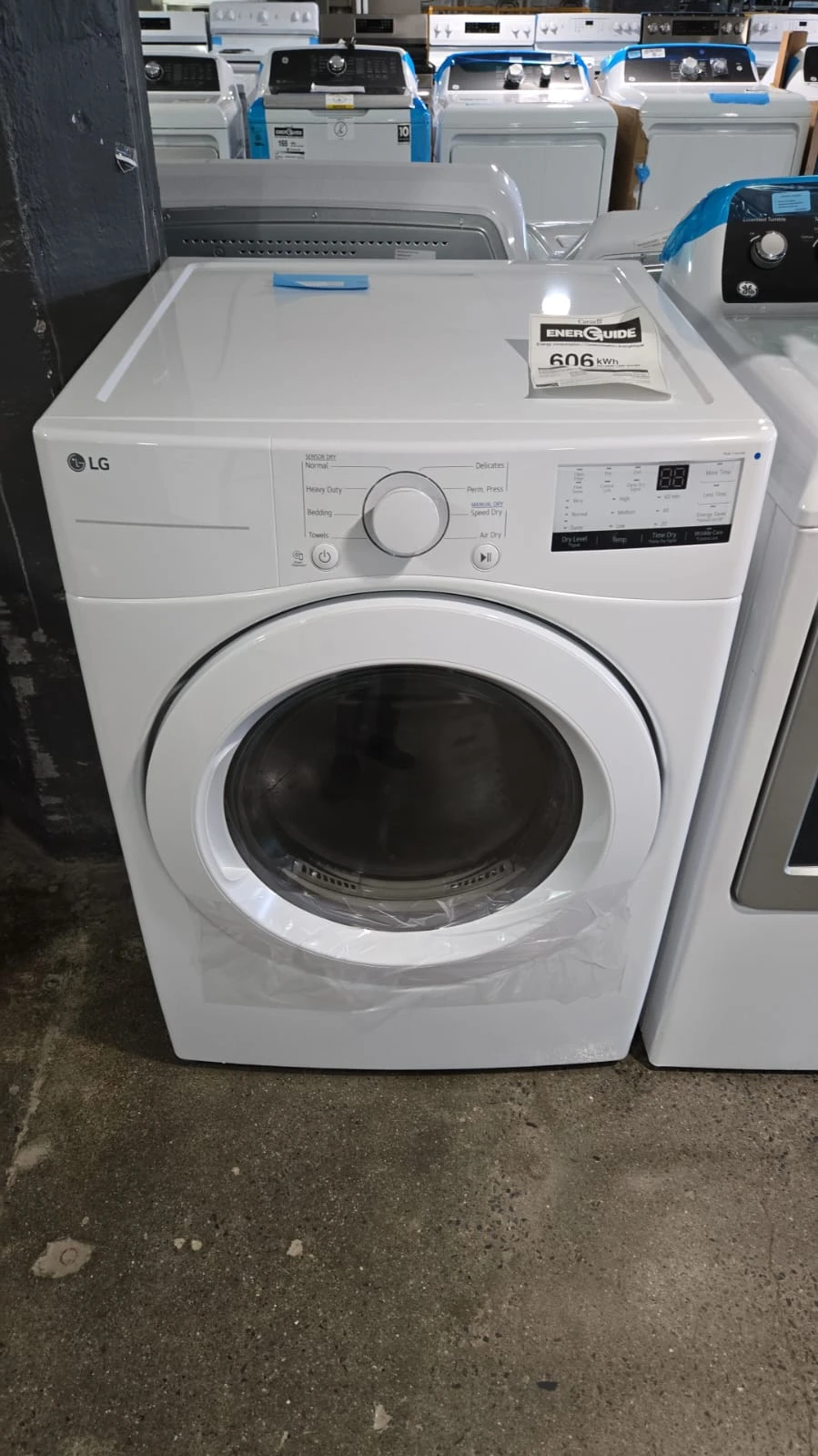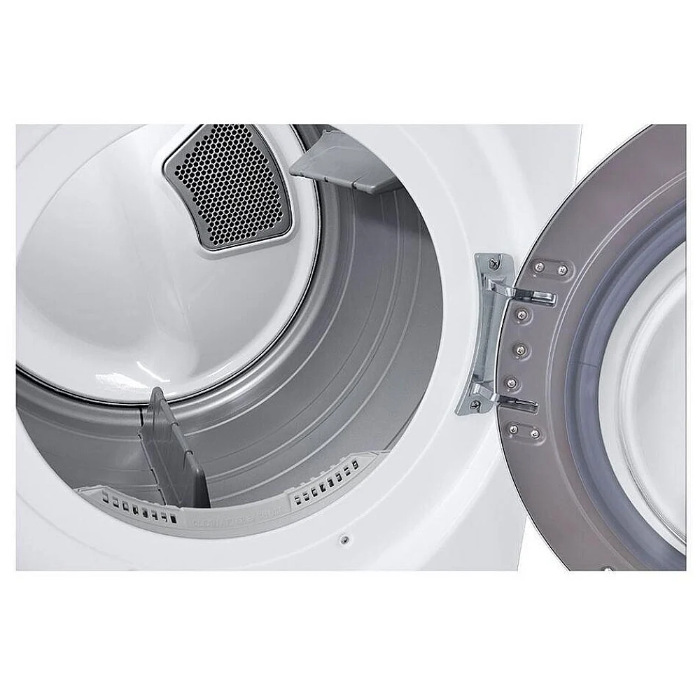 La sécheuse électrique LG DLE3400W offre une capacité généreuse et une installation polyvalente dans un format standard de 27 pouces.